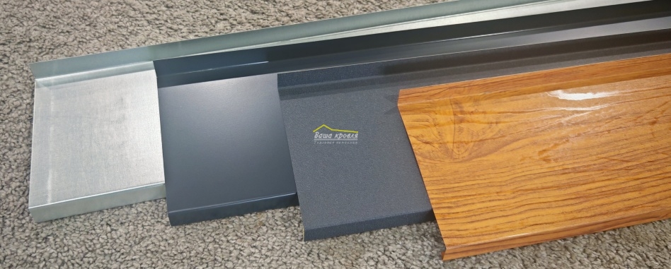 Чтобы у отливов был большой срок эксплуатации, мы изготавливаем их из крепкого металла толщиною 0,5 мм. Но некоторые редкие цвета (например: жёлтый, ультрамарин, оранжевый...) существуют только в толщине 0,45 мм.