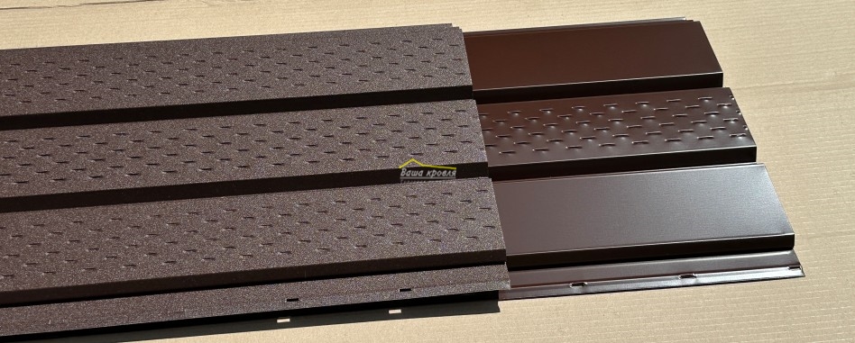 Если у Вас металлическая крыша (металлочерепица, профнастил или фалец), то софиты обычно покупают с таким же покрытием. Если мягкая черепица, то чаще всего выбирают матовое покрытие.