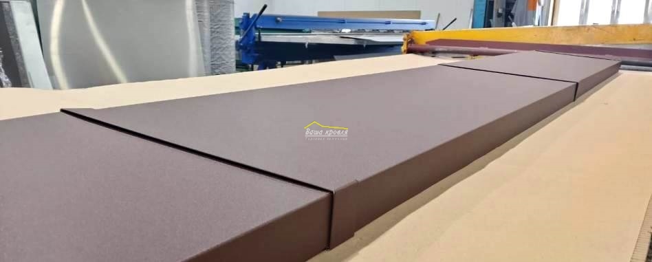 В нашем цеху мы изготавливаем металлические отливы для парапетов кровли. Чтобы отливы прослужили долго, работаем только с качественным металлом. На выбор более 40 цветов с глянцевым и матовым покрытием.